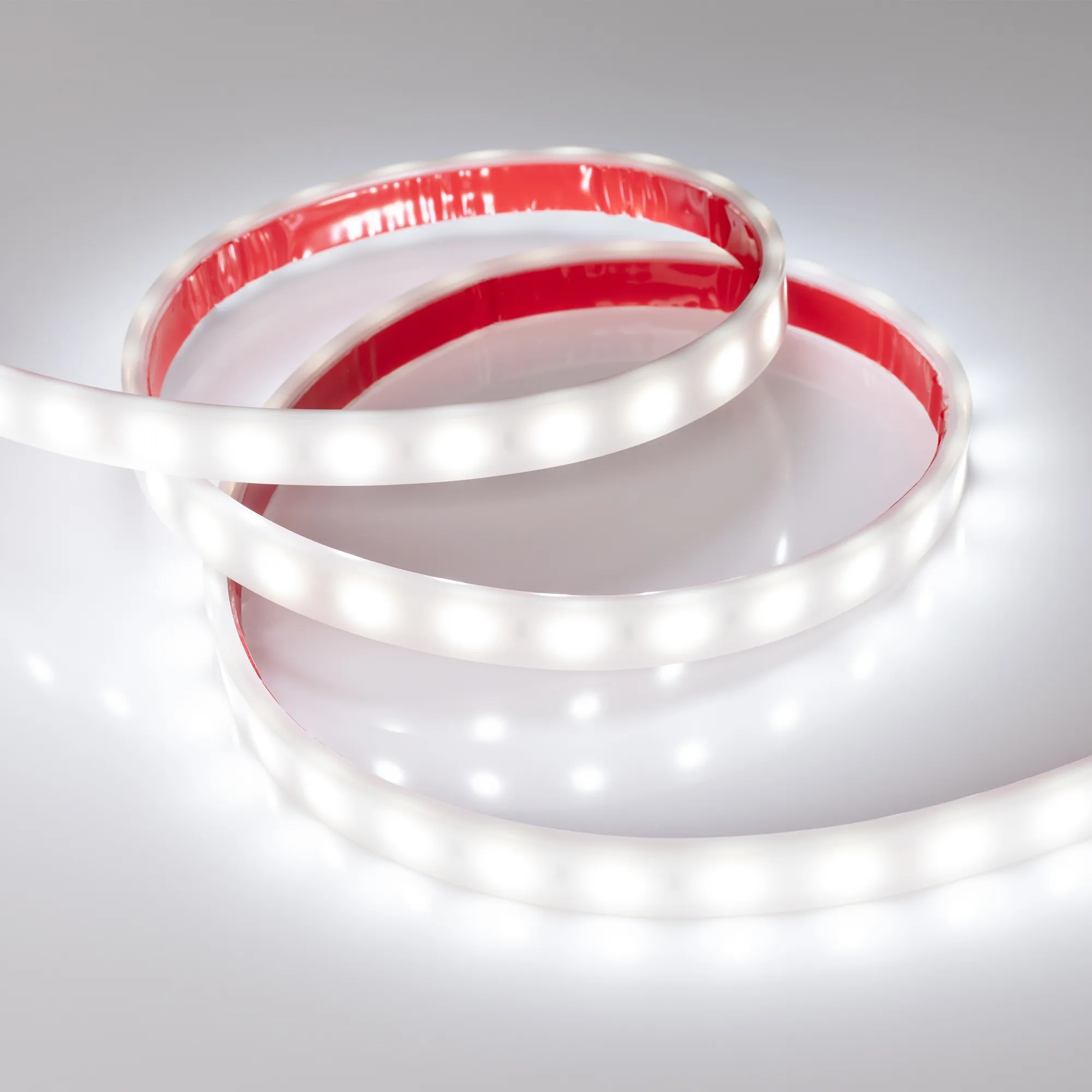 Герметичная гибкая лента (белая матовая силиконовая трубка) IP66, светодиоды smd 5060, 60шт/м (300шт на 5м), белая плата 10мм, скотч 3М. Цвет БЕЛЫЙ 5800-6500K. Питание 24V, мощность 14.4 Вт/м (72 Вт на 5м), угол 120°, цветопередача CRI>85. Размеры 5000х13x5мм. Мин.отрезок 100мм, 6 светодиодов. Цена за 1м. Минимальный заказ 1000 м.
