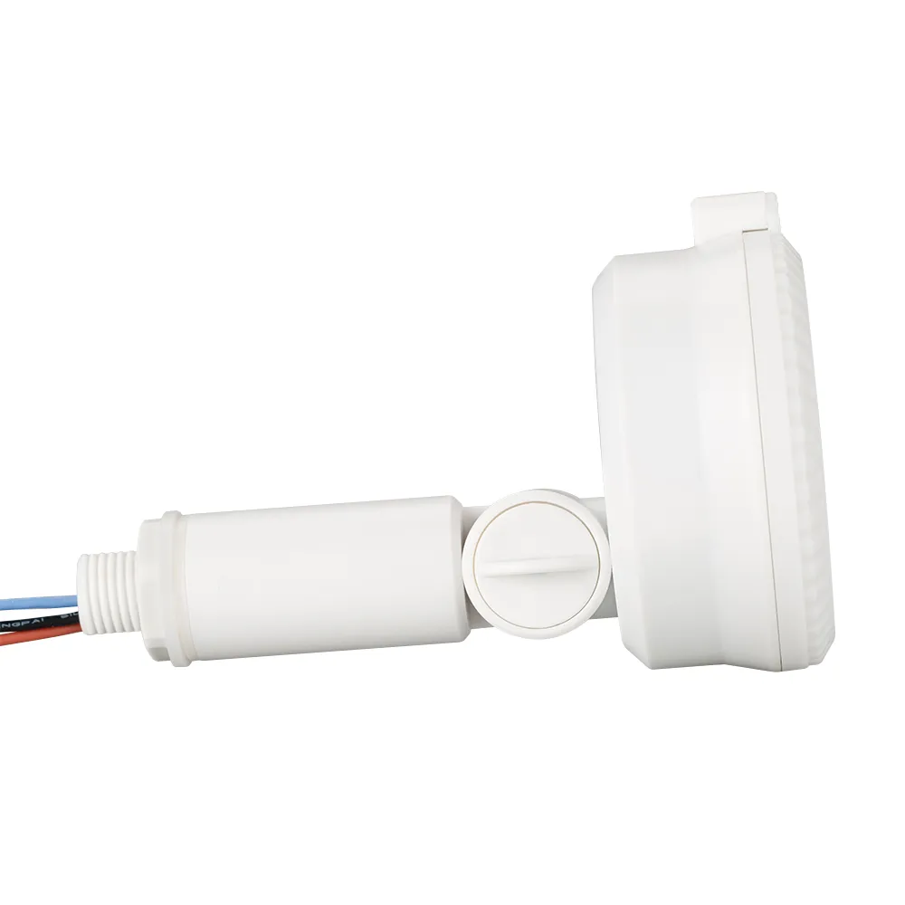 Микроволновый датчик движения, совмещенный с датчиком освещенности (белый корпус), работает через двери и тонкие стены, регулировка времени (5с–30мин), освещенности (2-50люкс), напряжение питания 220-240VAC, нагрузка 400 Вт, влагозащищенный IP65, размеры DxH 72x34 мм.