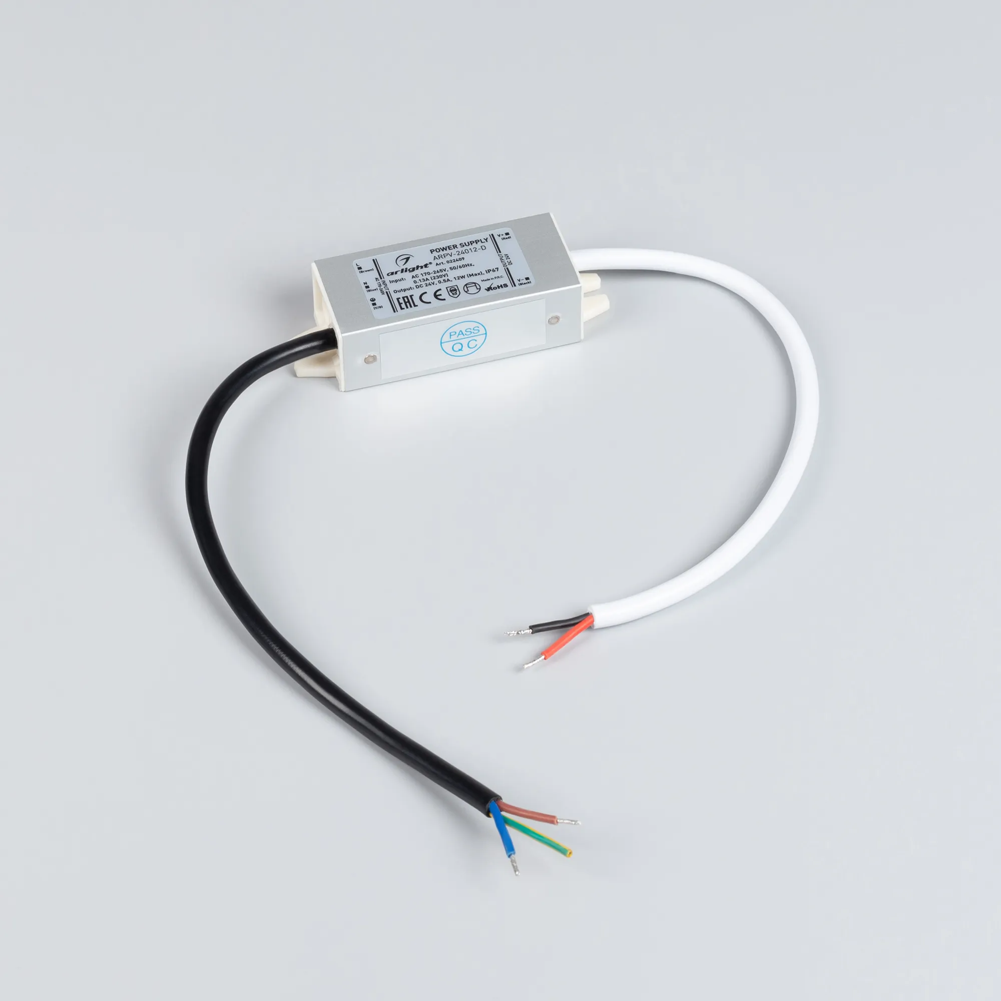 Источник напряжения с гальванической развязкой для светодиодных изделий. Входное напряжение 170-265 VAC. Выходные параметры: 24 В, 0,5 А, 12 Вт. Встроенный PFC >0,5. Герметичный алюминиевый корпус IP 67. Рабочая температура -30…+50C⁰. Габаритные размеры длина 80 мм, ширина 30 мм, высота 20 мм. Гарантийный срок 3 года.