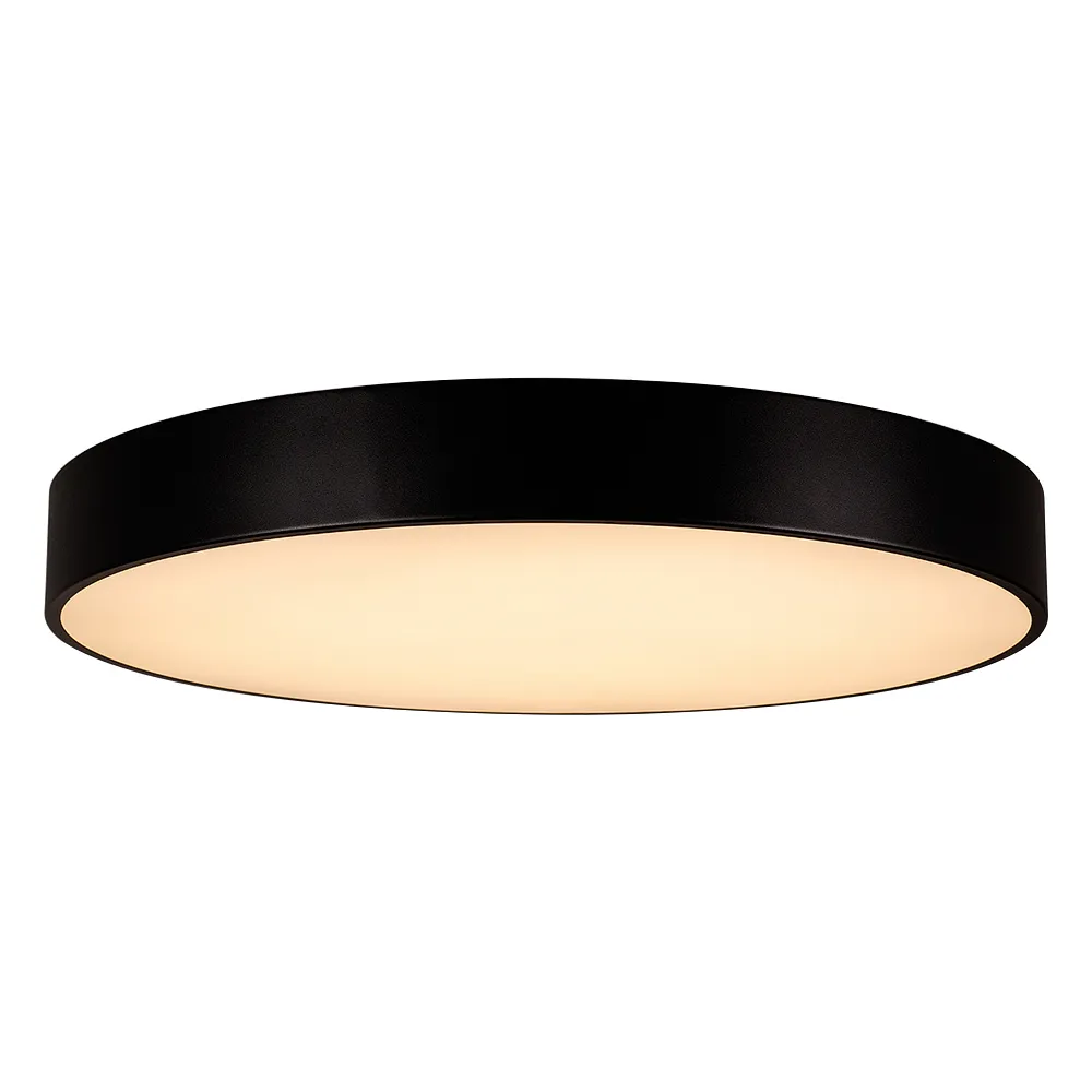 Накладной светильник 90Вт, черный круглый корпус. Цвет ТЕПЛЫЙ БЕЛЫЙ 3000K, св.поток 5220лм, CRI(Ra)>80, угол 120°. Размер Ф800x100мм. Питание AC220-240V, 90Вт, драйвер встроенный (3 шт 30-42V 700mA).
