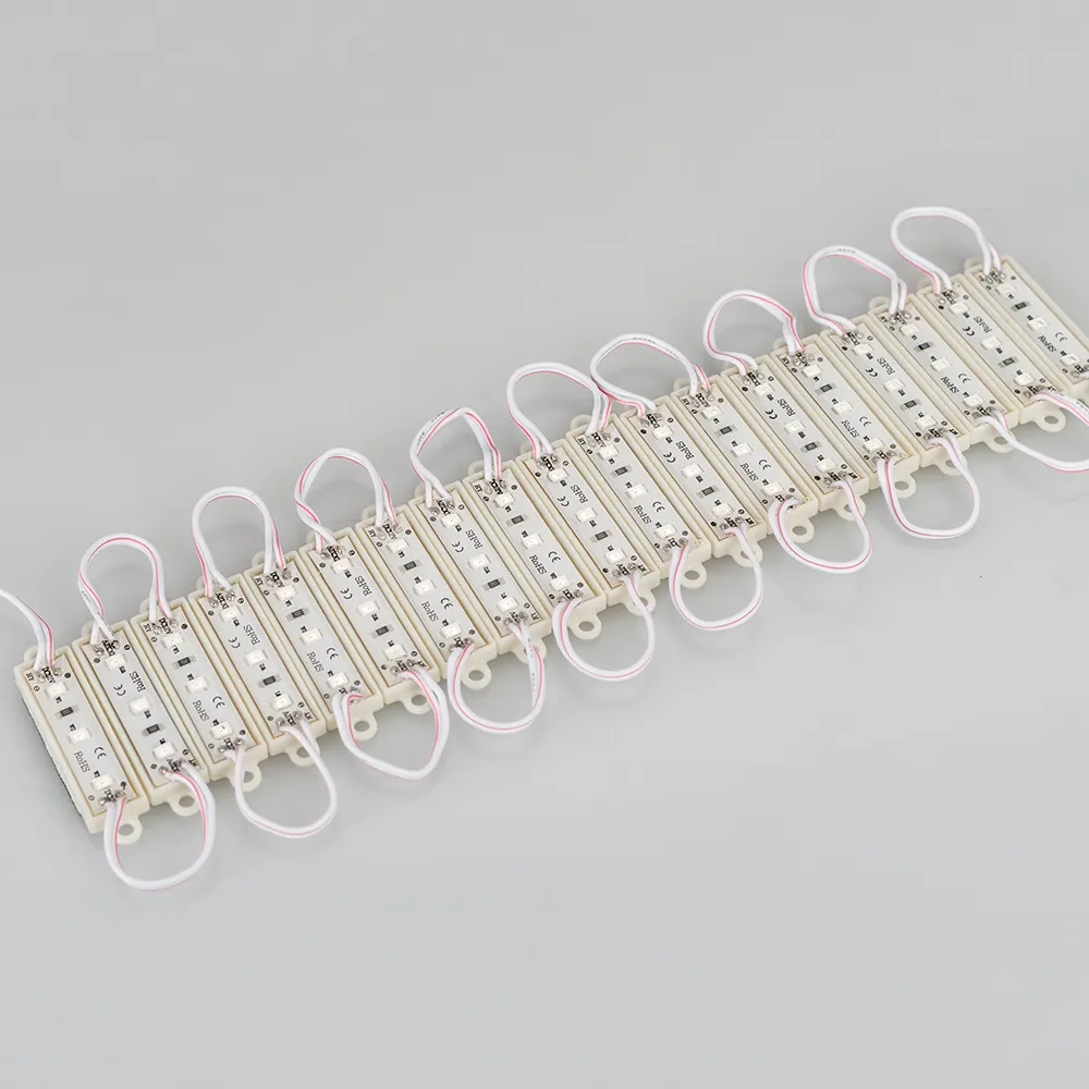 Модуль IP65, копус PVC, 3 светодиода smd 2835. Цвет Желтый, угол 120°. На проводе 20шт, между модулями --мм. Питание 12В, мощность 0.3W. Габариты LxHxW: 36х12х4 мм.