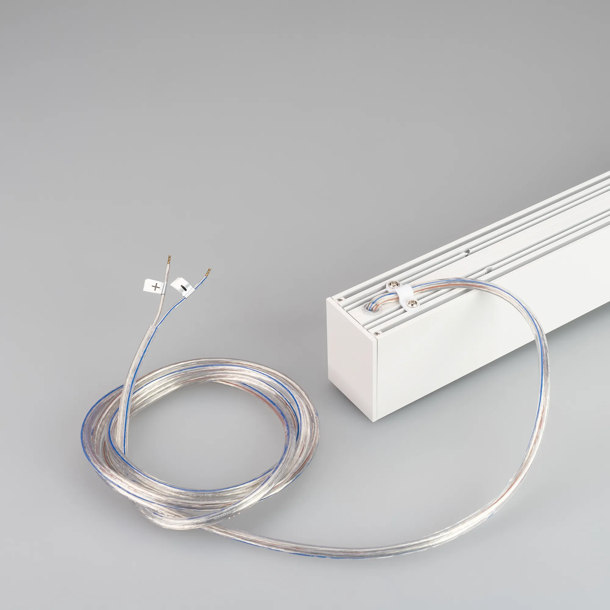 Подвесной или накладной магнитный трек с отсеком для блока питания, длина 3000мм. DC24V. Материал алюминий, цвет белый. Две заглушки в комплекте. Размер ДxШxВ: 3000x45x92мм. Размер (с учетом заглушек) ДxШxВ: 3006x45x92мм. Предельные габариты блока питания 42x25мм. Аксессуары для подвесного монтажа в комплект не входят.