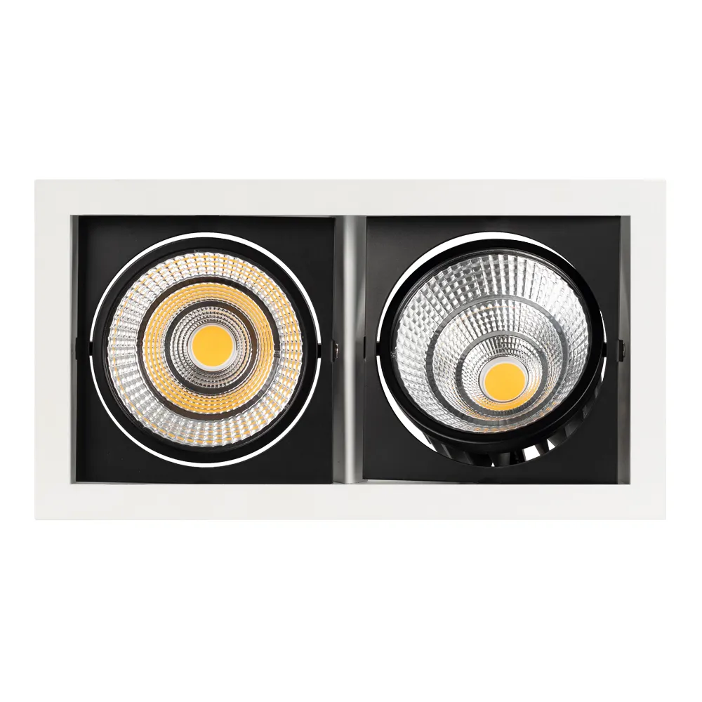Встраиваемый карданный светильник. Угол 30° / 2x25Вт / БЕЛЫЙ 6000K / 4800лм, CRI>90. Корпус из белого алюминия с черными вставками. Питание AC220-240V, 50Вт, 700mA 30-42V, драйвер в комплекте, 2 шт. Размеры LxWxH: 283х152x100мм, отверстие для установки 265x135мм.