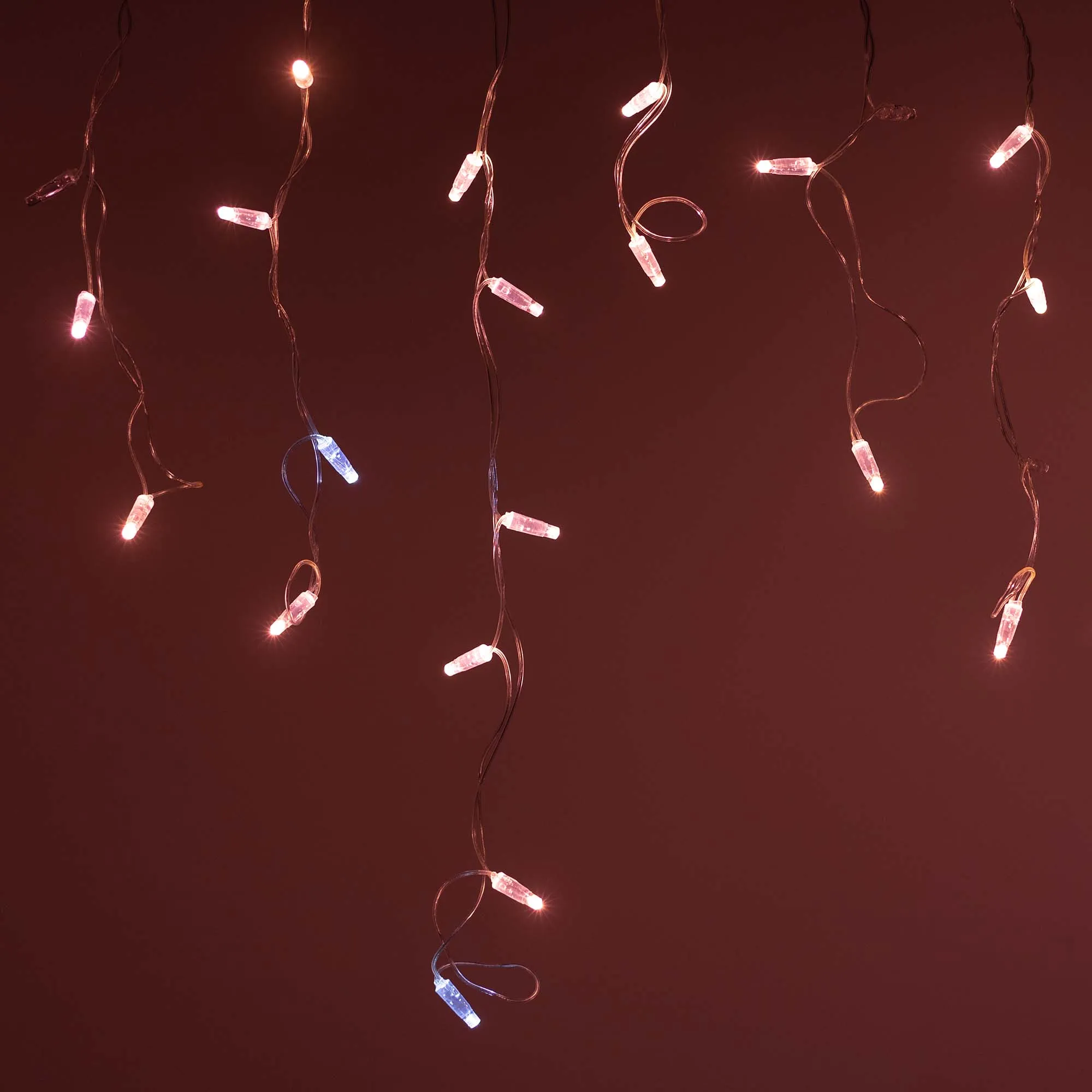 Светодиодная бахрома Classic. Размер 2400 мм (длина 2400 мм, по длине 24 нити высотой 200/600 мм). Количество светодиодов 88 шт размером 7 мм. Основной цвет свечения РОЗОВОЕ ЗОЛОТО, эффект мерцания редких точек (БЕЛЫЙ 6000К) с резким световым рисунком (прозрачная вогнутая линза), соотношение светодиодов: 66 розовых постоянного свечения / 12 белых с мерцанием. Провод прозрачный, ПВХ. Питание 230 В, Мощность 6 Вт, защита IP65, применение на улице под навесом. Аксессуары для подключения приобретаются отдельно.