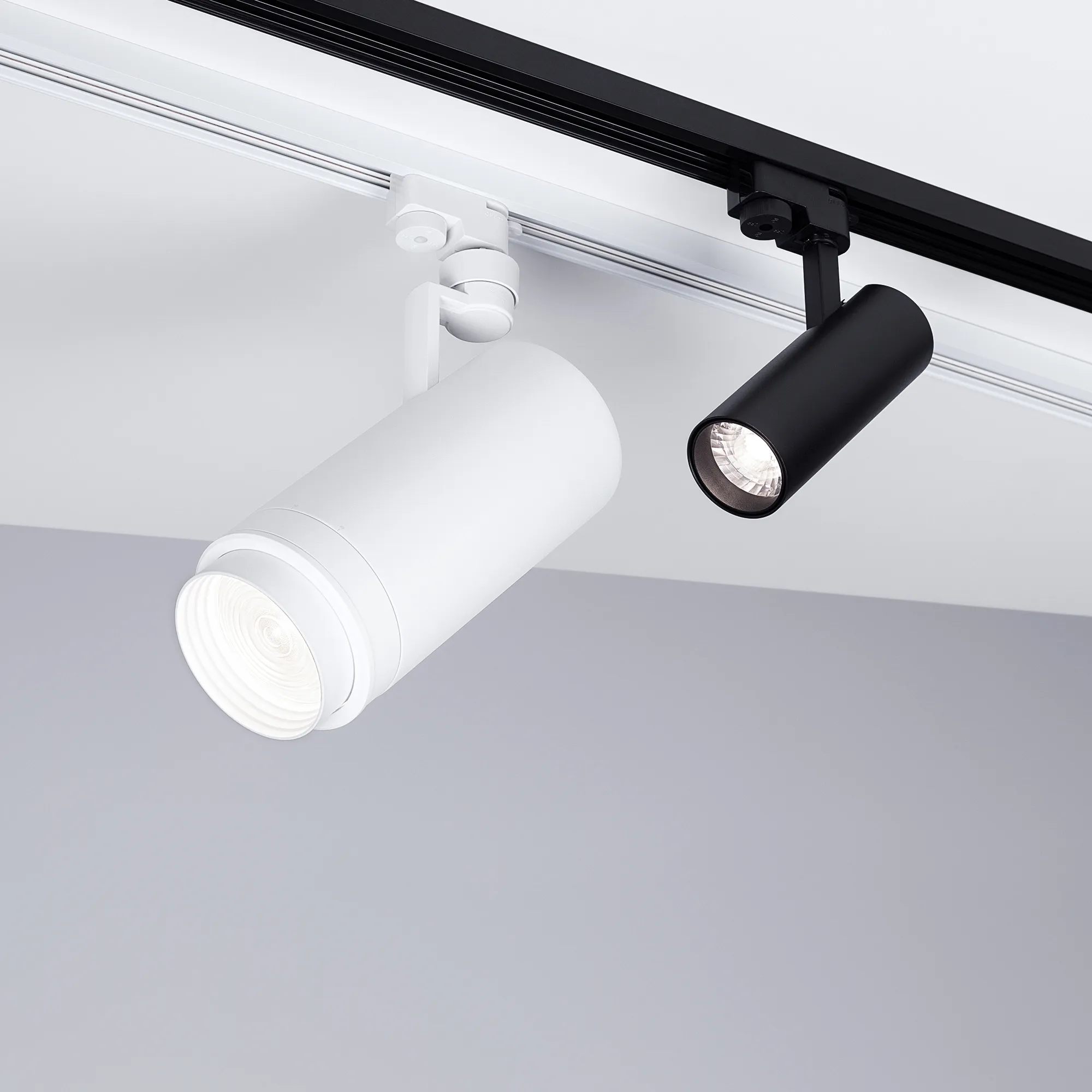 Поставка под заказ от 100 шт. Светильник подвесной для треков/шин 2 провода. Мощность 30 Вт, св. поток 2700-3300 лм, 90 лм/Вт, белый 6000 K, CRI>90, угол 24°, напряжение питания 230 В. Черный круглый корпус из алюминия, материал линзы PMMA , степень защиты IP20. Размер: диаметр 90 мм, высота 185 мм. Монтаж на трек 1-фазный. Драйвер встроенный 30-40 В, 750 мА., пульсация <1%.