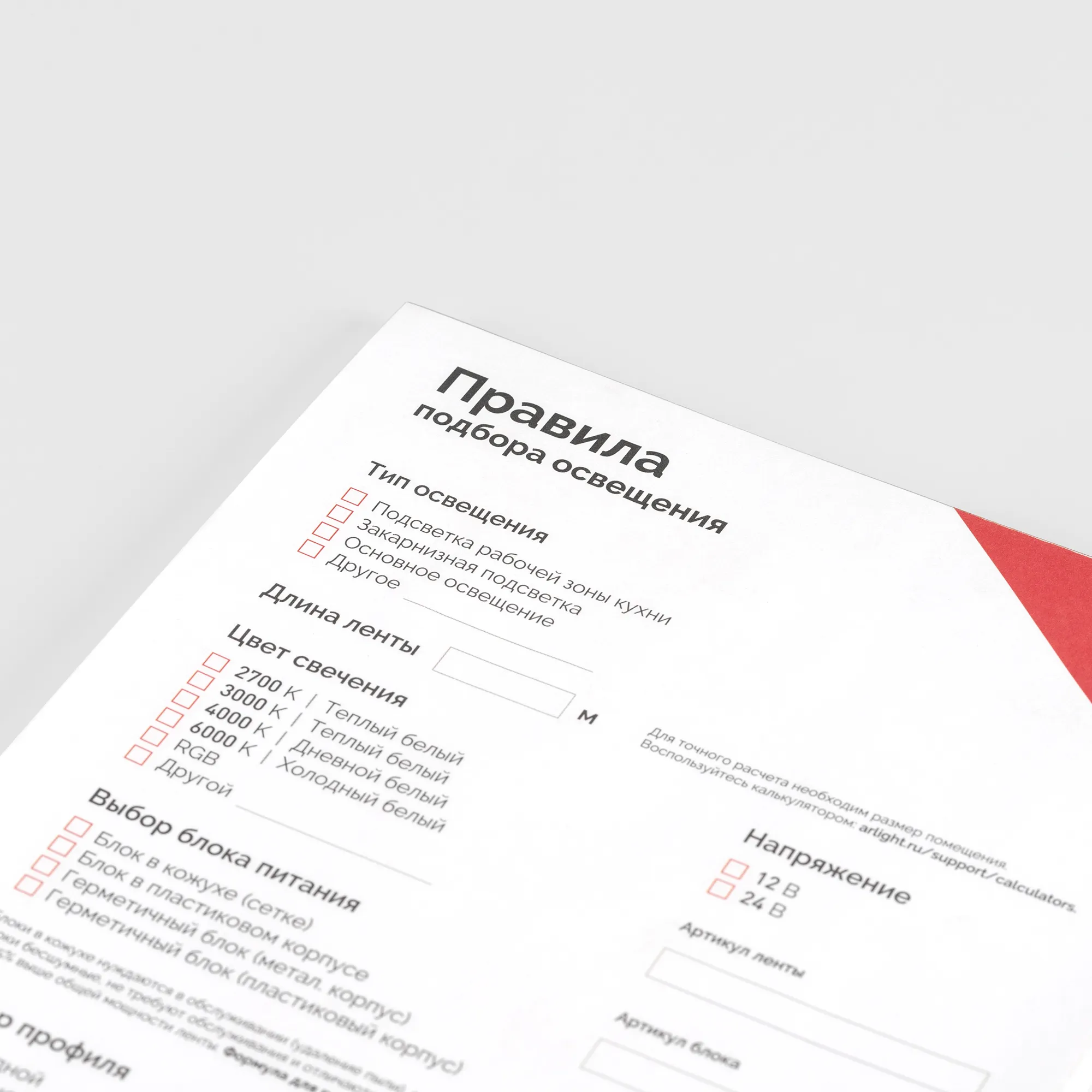 Блокнот- подсказка Правила подбора ленты, блоков питания, профиля и управления (Arlight, -)