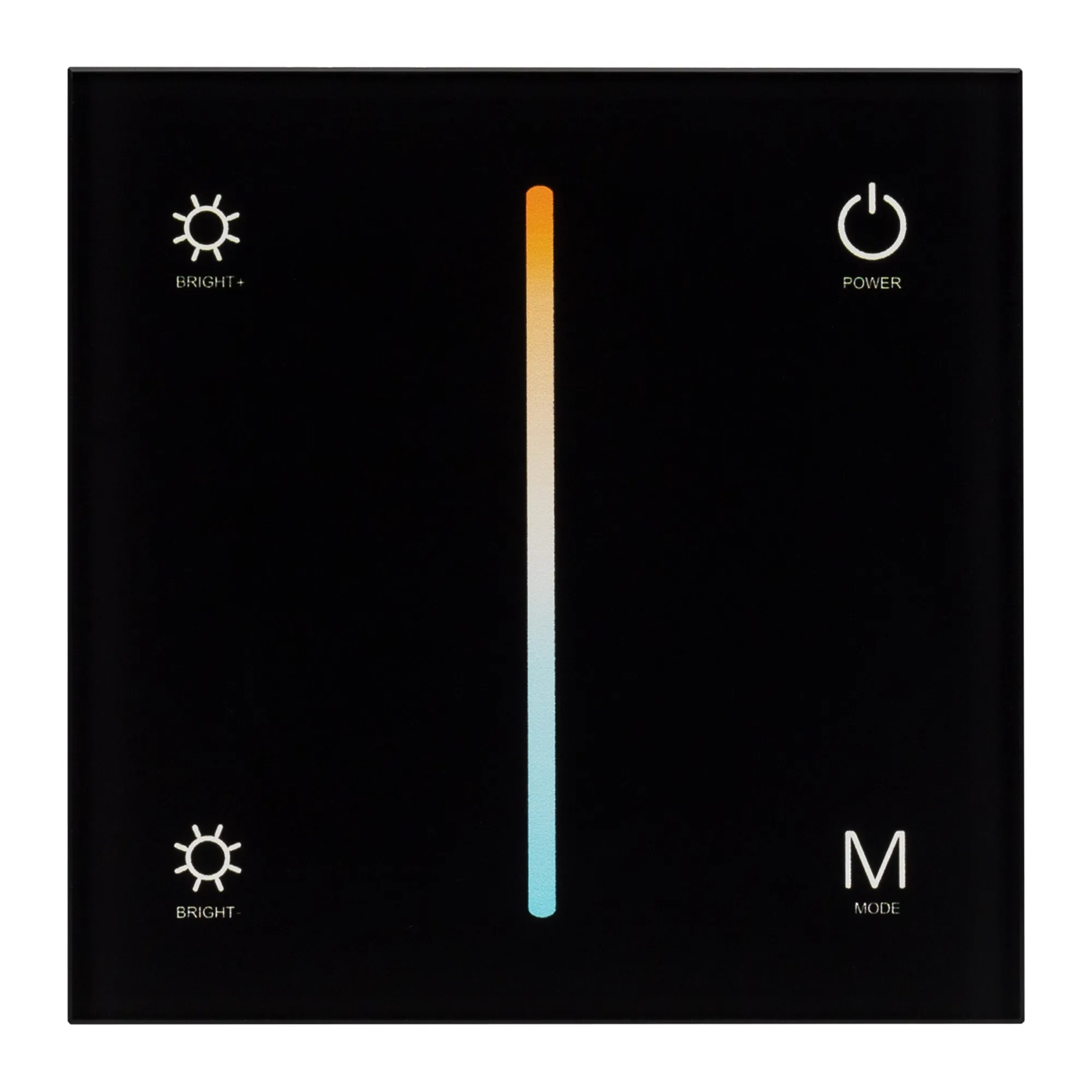 Встраиваемая сенсорная стеклянная панель 2.4 ГГц, цвет чёрный. Для управления температурой свечения (MIX/CCT) и яркостью с помощью сенсорной полосы. Работает в режиме master/slave и может выполнять функцию независимого контроллера. Питание/рабочее напряжение 12-24VDC, максимальный ток 3A на канал, 4 канала, максимальная мощность 144-288W. Габариты 86х86х35 мм. Панель совместима с пультами и контроллерами серии SMART.