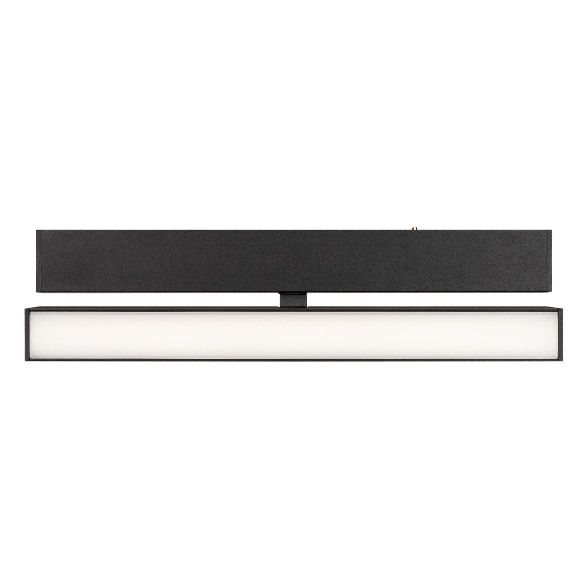 Светильник поворотный для магнитных треков шириной 25мм, 6Вт. Цвет свечения ТЕПЛЫЙ 3000K, световой поток 380лм, угол 100°, CRI>90. Корпус прямоугольный, металл, цвет черный, IP20. Размеры LxWxH 204x20x46мм. Входное напряжение DC24V, мощность 6Вт. Драйвер DС24V/AC230V поставляется отдельно. Диммируется только с 026407, 027633.
