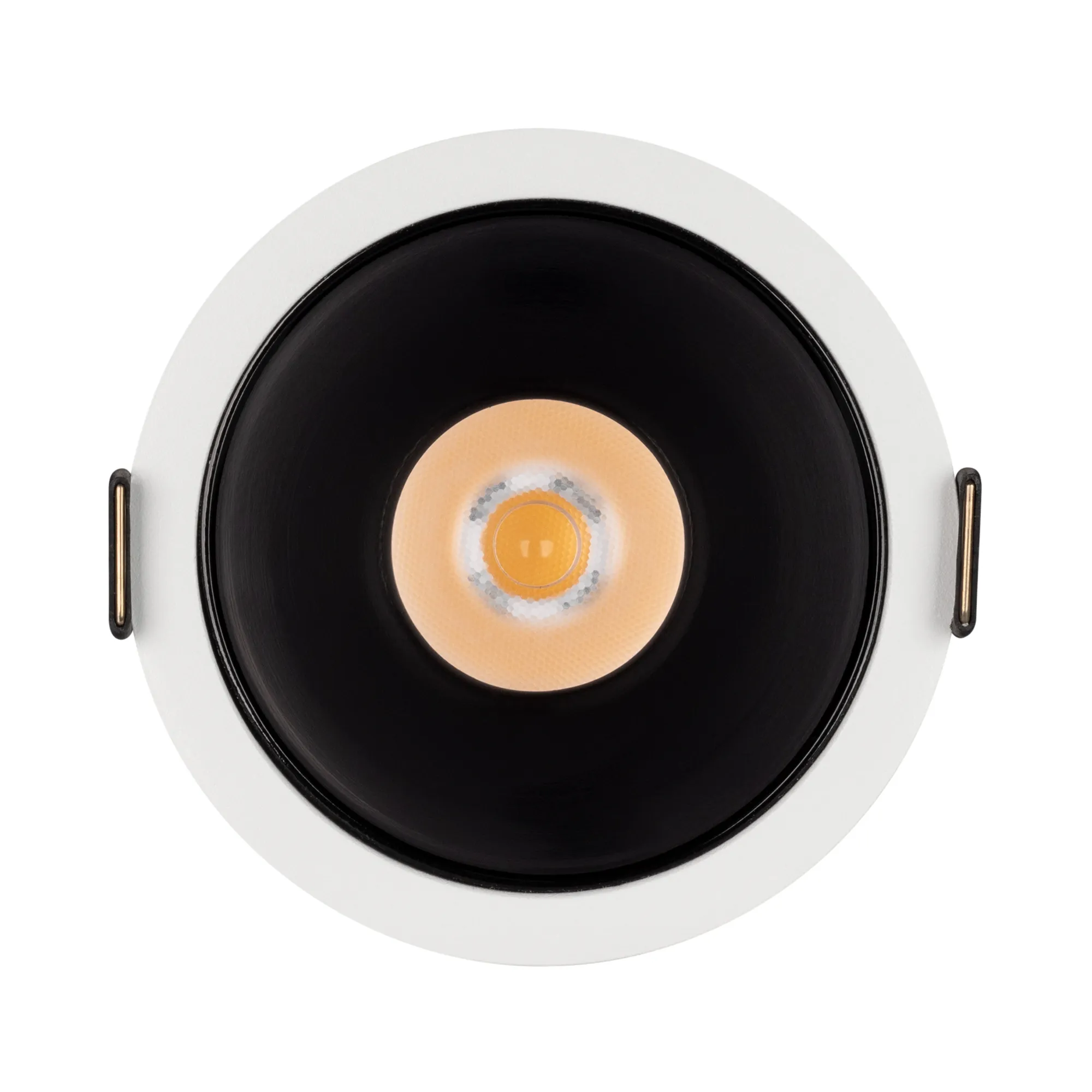 Встраиваемый светильник даунлайт. Мощность 23.3 Вт, св. поток 1995 лм, 86 лм/Вт, теплый 3000 K, CRI>90, UGR<16, угол 30°, напряжение питания 230 В. Белый круглый корпус из алюминия, черный ГЛЯНЦЕВЫЙ отражатель из PMMA, степень защиты IP20. Размер: диаметр 90 мм, высота 93 мм. Монтаж встраиваемый, установочное отверстие: диаметр 82 мм. Драйвер 30-40 В, 600 мА, пульсация <1%.