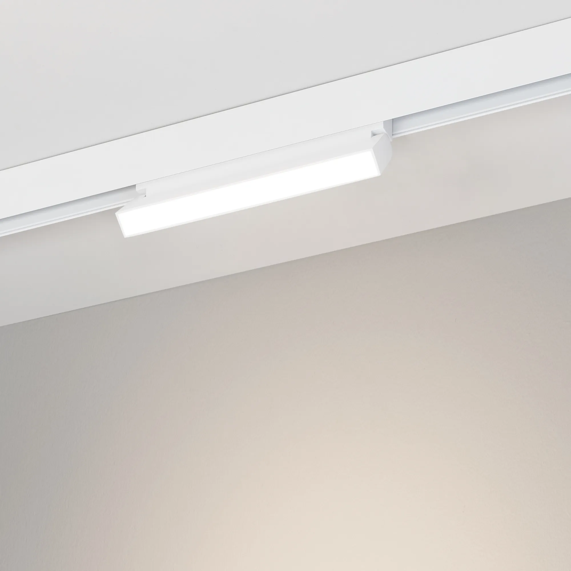 Светильник для магнитных треков MAG-ORIENT шириной 26 мм с управлением DALI. Мощность 12 Вт, св. поток 760 лм, 64 лм/Вт, дневной 4000 K, CRI>90, угол 80°, напряжение питания 48 В. Черный прямоугольный корпус из металл, экран поликарбонат, степень защиты IP20. Размер: длина 231 мм, ширина 23 мм, высота 107 мм. Монтаж на трек MAG-ORIENT. Пульсация <1%.