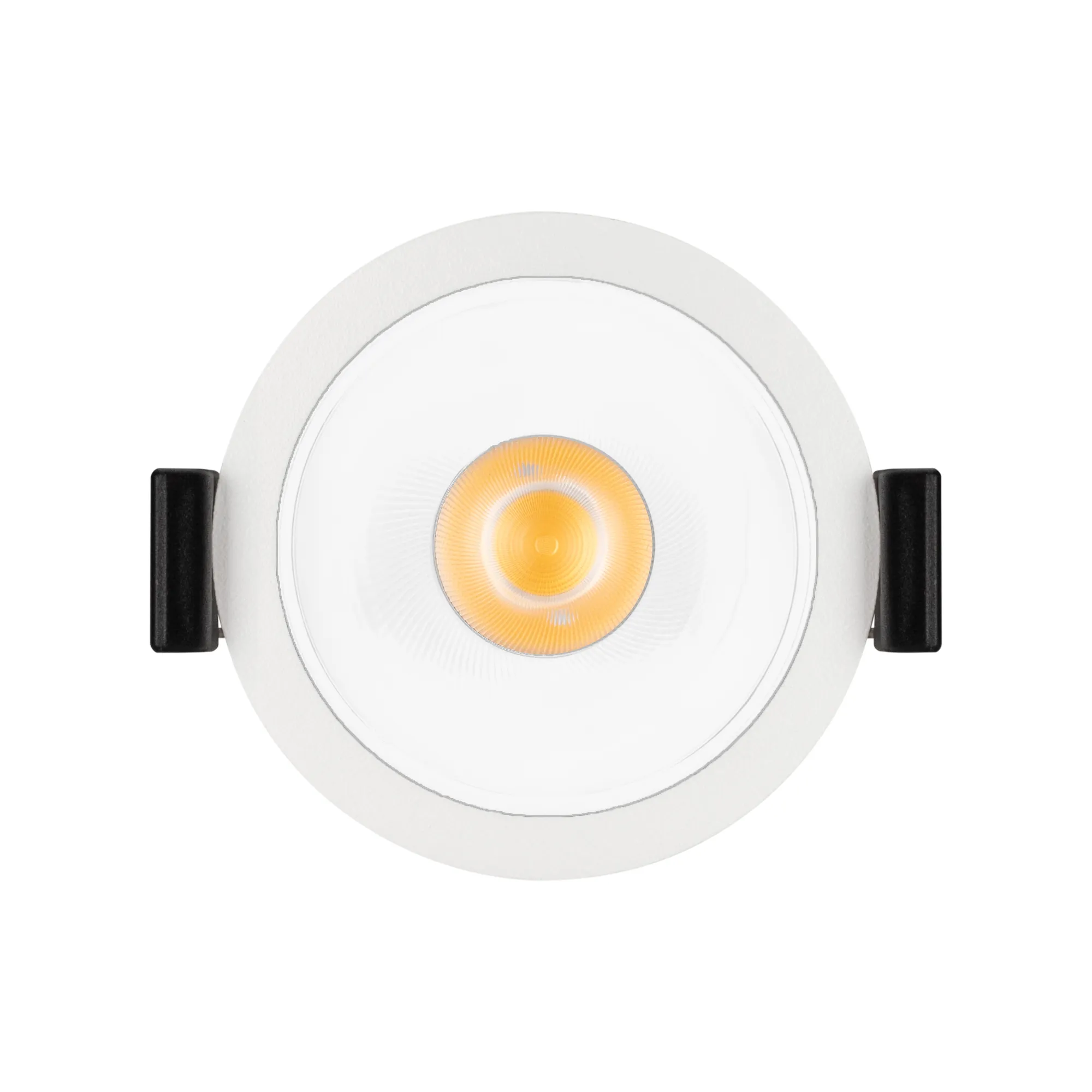 Встраиваемый светильник даунлайт. Мощность 15 Вт, св. поток 1210 лм, 81 лм/Вт, теплый 3000 K, CRI>90, UGR<16, угол 35°, напряжение питания 230 В. Белый круглый корпус из алюминия, белый ГЛЯНЦЕВЫЙ отражатель из PMMA, степень защиты IP20. Размер: диаметр 66 мм, высота 68 мм. Монтаж встраиваемый, установочное отверстие: диаметр 60 мм. Драйвер 26-43 В, 350 мА, пульсация <2%.