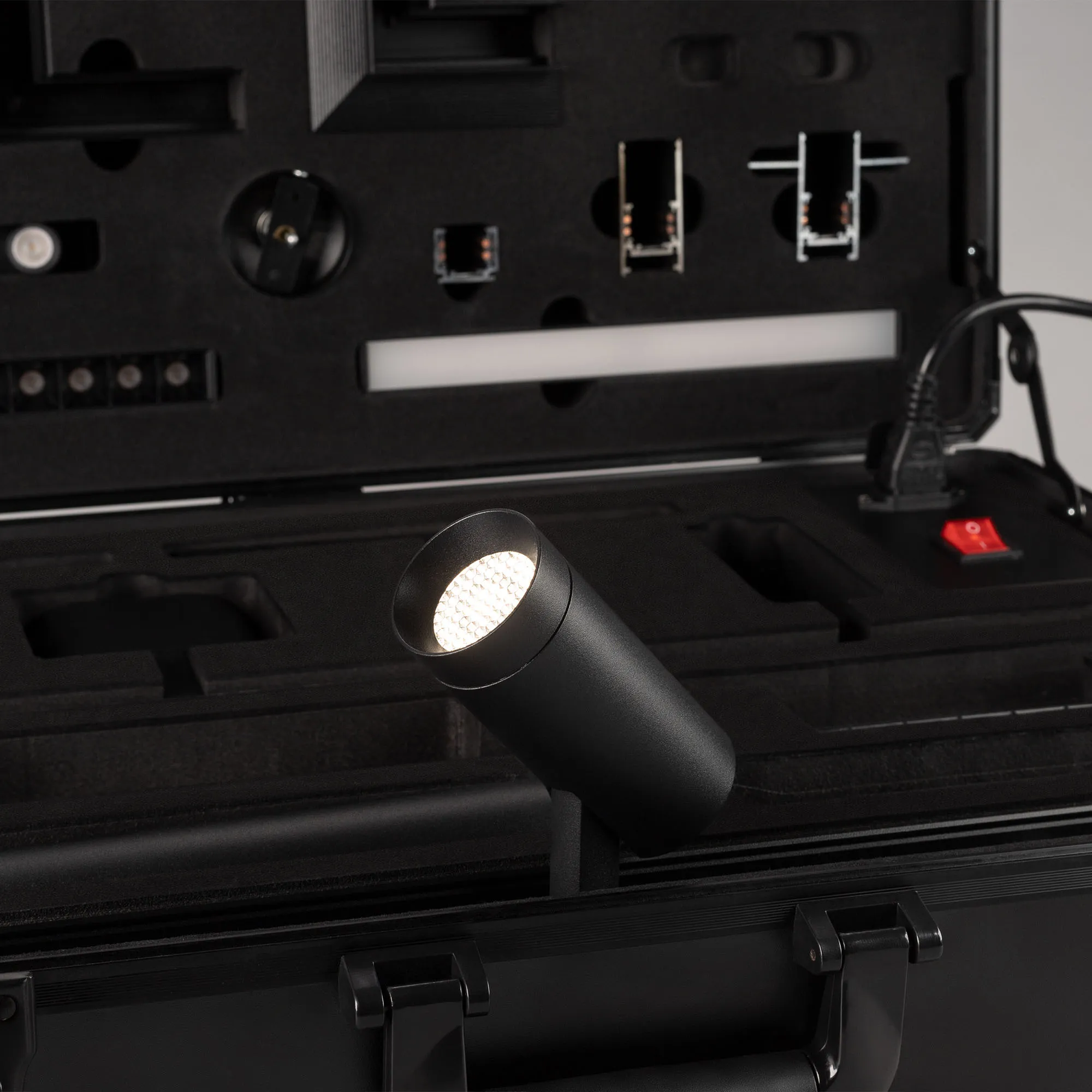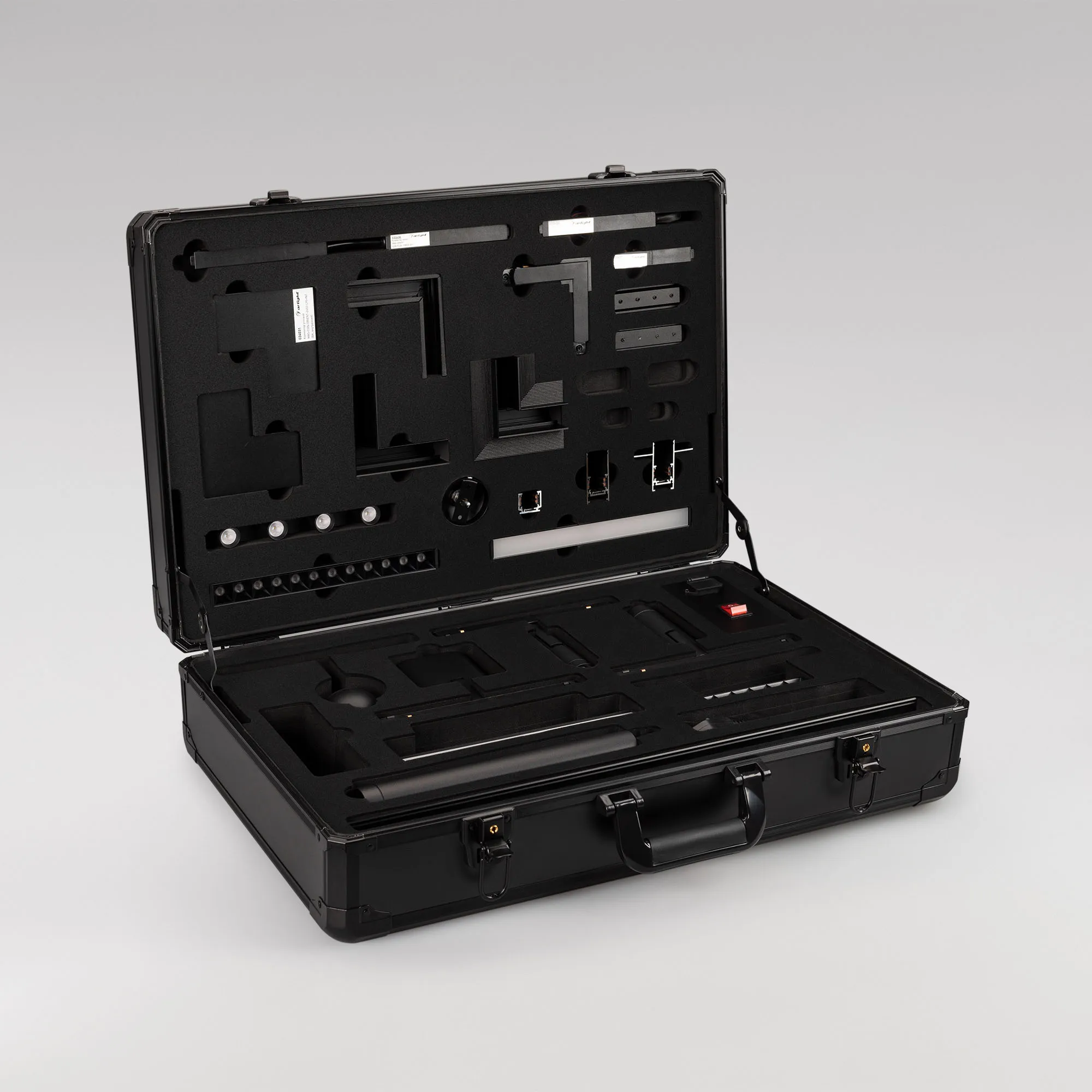 Демо-кейс для демонстрации компонентов магнитной системы MAG-ORIENT с возможностью электрического подключения светильников.