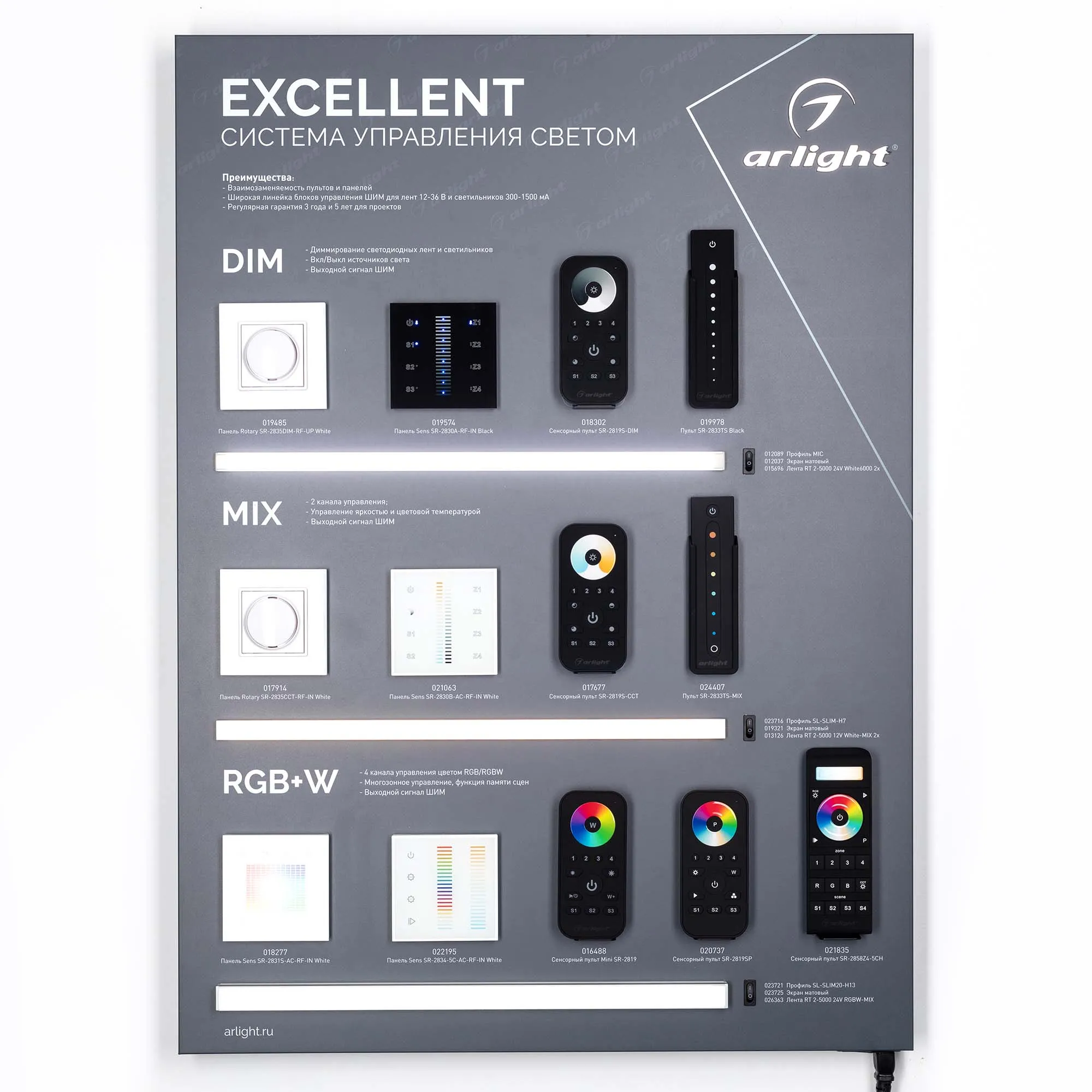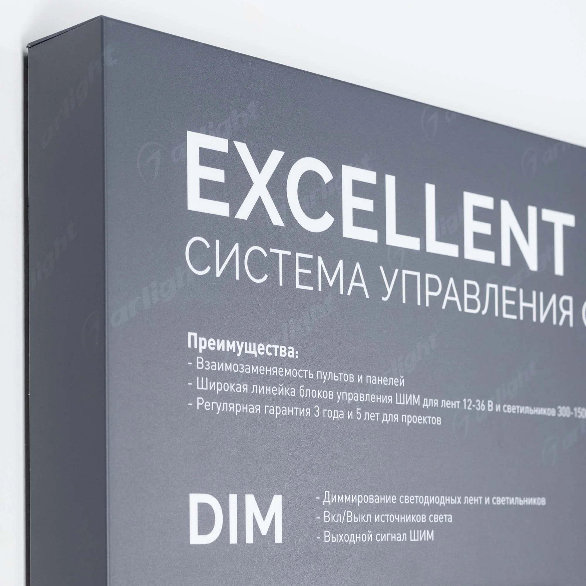 Наши специалисты знают все о продукции Arlight и с радостью помогут Вам выбрать комплектующие к товару "Стенд Системы Управления Excellent Arlight 830x600mm (DB 3мм, пленка, лого) (Arlight, -)", или другие товары из раздела "Управление светом".