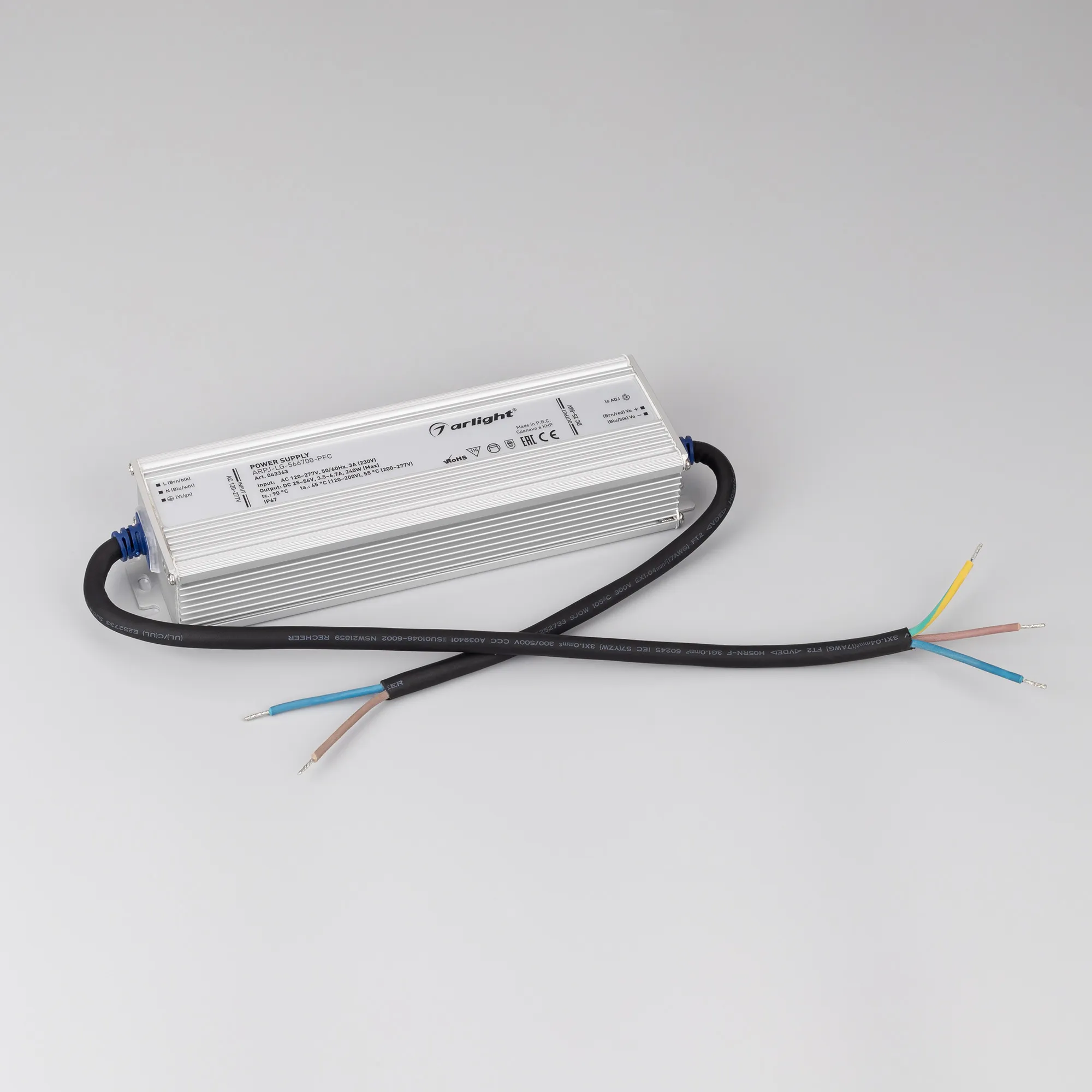 В магазине Мельковский Свет Вы можете купить "Блок питания ARPJ-LG-566700-PFC (240W, 25-56V, 3.5-6.7A) (Arlight, IP67 Металл, 5 лет)"