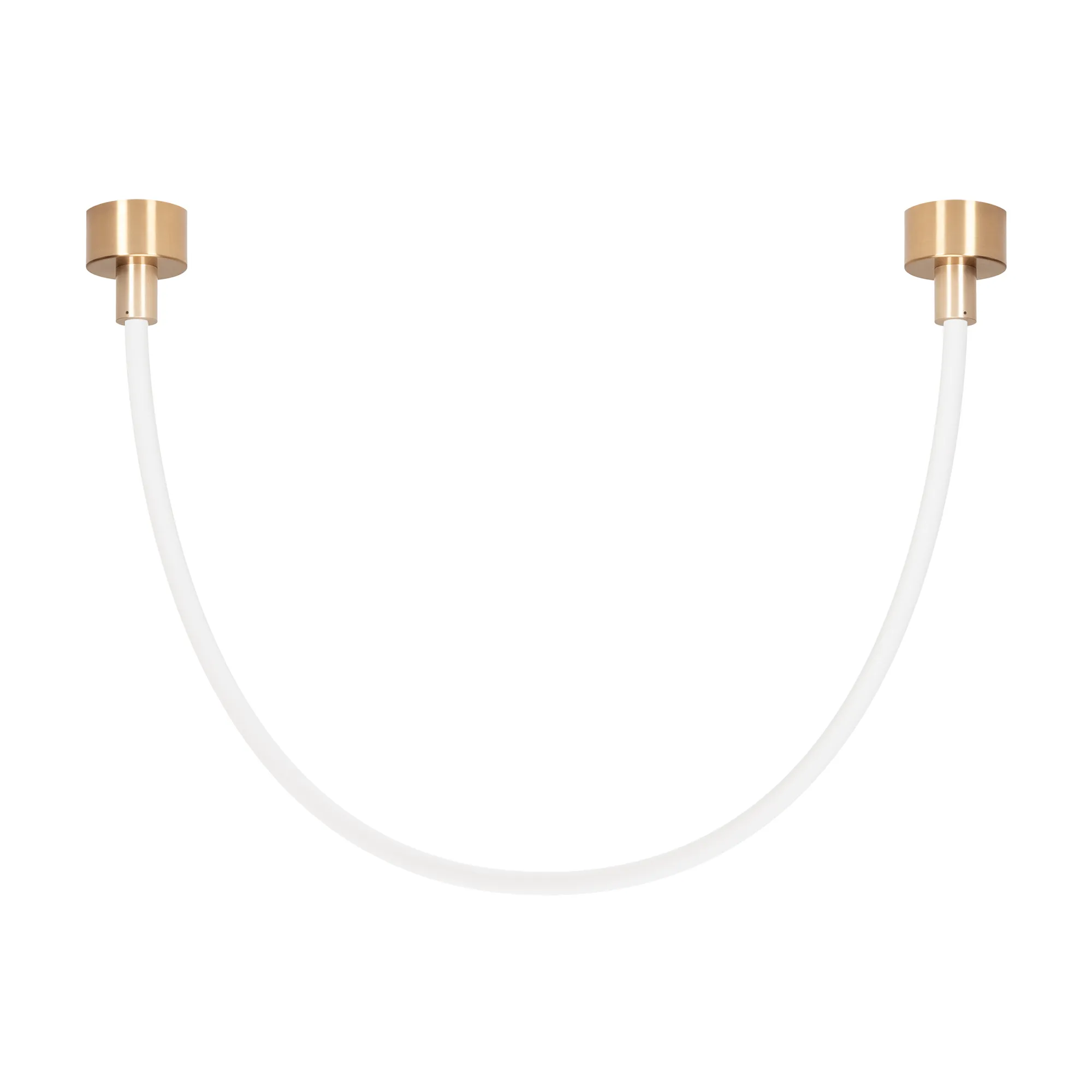 Подвесной светильник. Мощность 18 Вт, св. поток 980 лм, 54 лм/Вт, тёплый 3000 K, CRI>90, угол 360°, напряжение питания 230 В. Золотой круглый корпус из стали, силиконовая герметичная лента, степень защиты IP20. Размер: общая высота чаши 85 мм, высота чаши без вывода под неон 50 мм, диаметр вывода под неон 35 мм, диаметр чаши 130 мм, диаметр силиконовой герметичной ленты 18 мм, длина силиконовой герметичной ленты 1200 мм. Монтаж накладной. Блок питания 24 В, 750 мА, пульсация <5%.