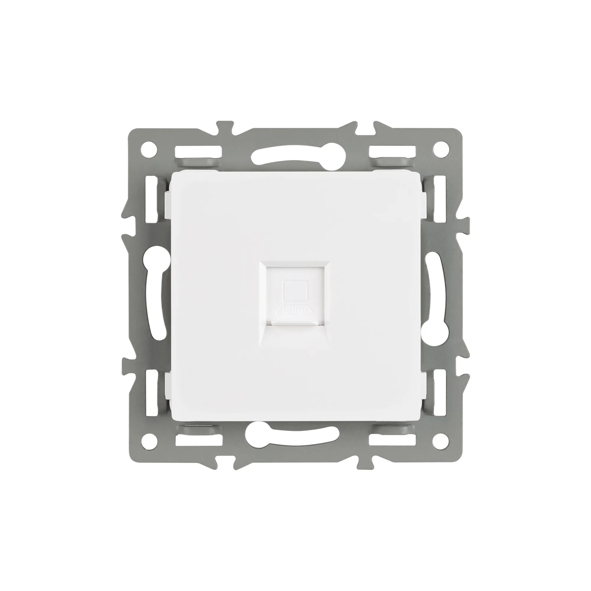 Механизм компьютерной розетки на 1 пост 6-й категории (CAT6), с суппортом из алюминия. Цвет - белый. Степень пылевлагозащиты - IP20.