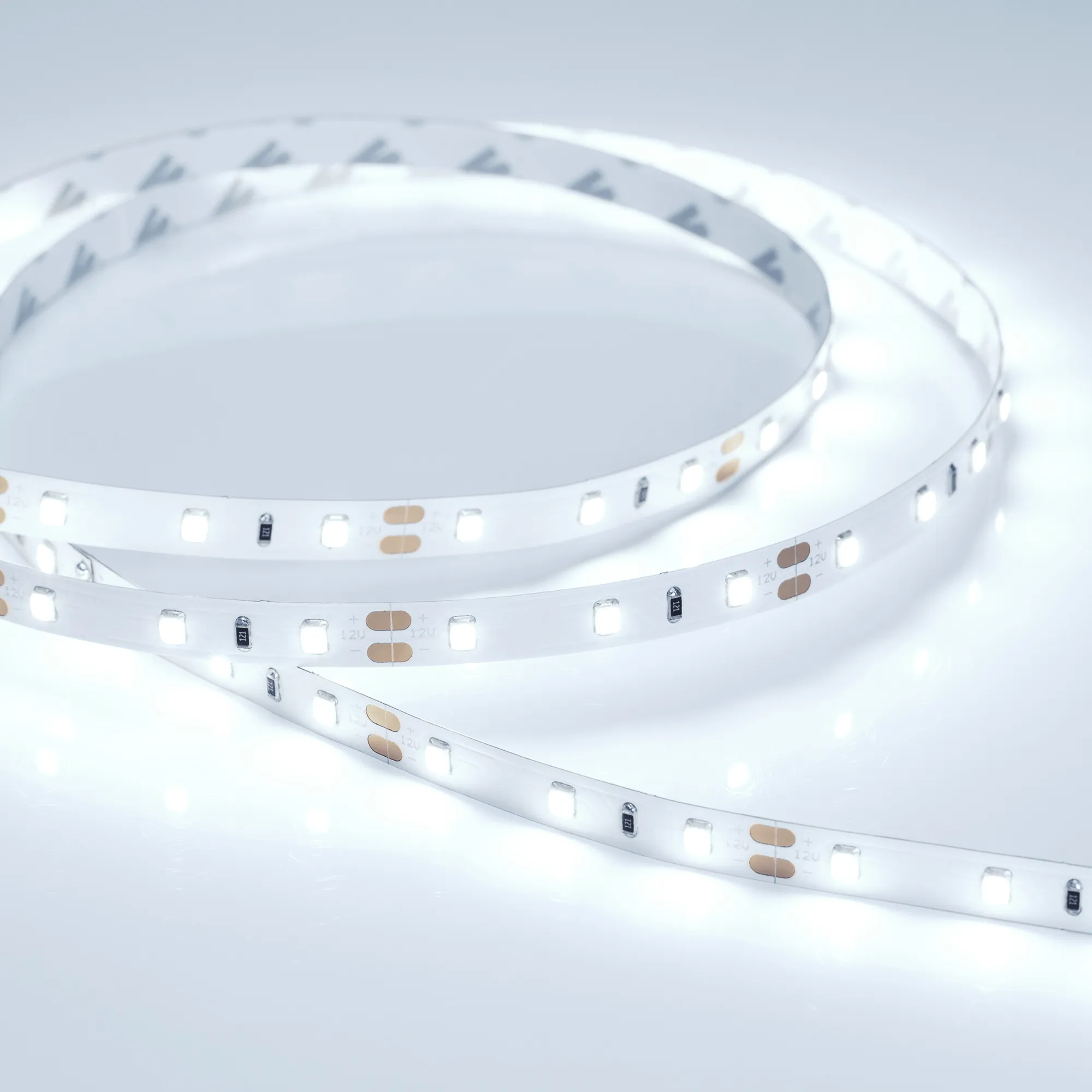 Поставка под заказ от 1200 м. Гибкая лента BAT, светодиоды smd 2835, 60шт/м (300шт на 5м), белая плата 8мм, скотч 3М. Цвет ХОЛОДНЫЙ 10000-16000K (BIN BAT). Питание 12V, мощность 7.2 Вт/м (36 Вт на 5м), угол 120°, цветопередача CRI>85. Размеры 5000х8x1.5мм. Мин.отрезок 50мм, 3 шт светодиода. Пакет 5м. Цена за 1м.