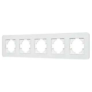 Рамка стеклянная на 5 постов, под встраиваемый механизм. Цвет - белый с Soft-Touch покрытием. Среднего уровня герметичности IP20. Ориентация монтажа - горизонтальная (основным ориентиром служат посадочные выступы для накладки механизма).