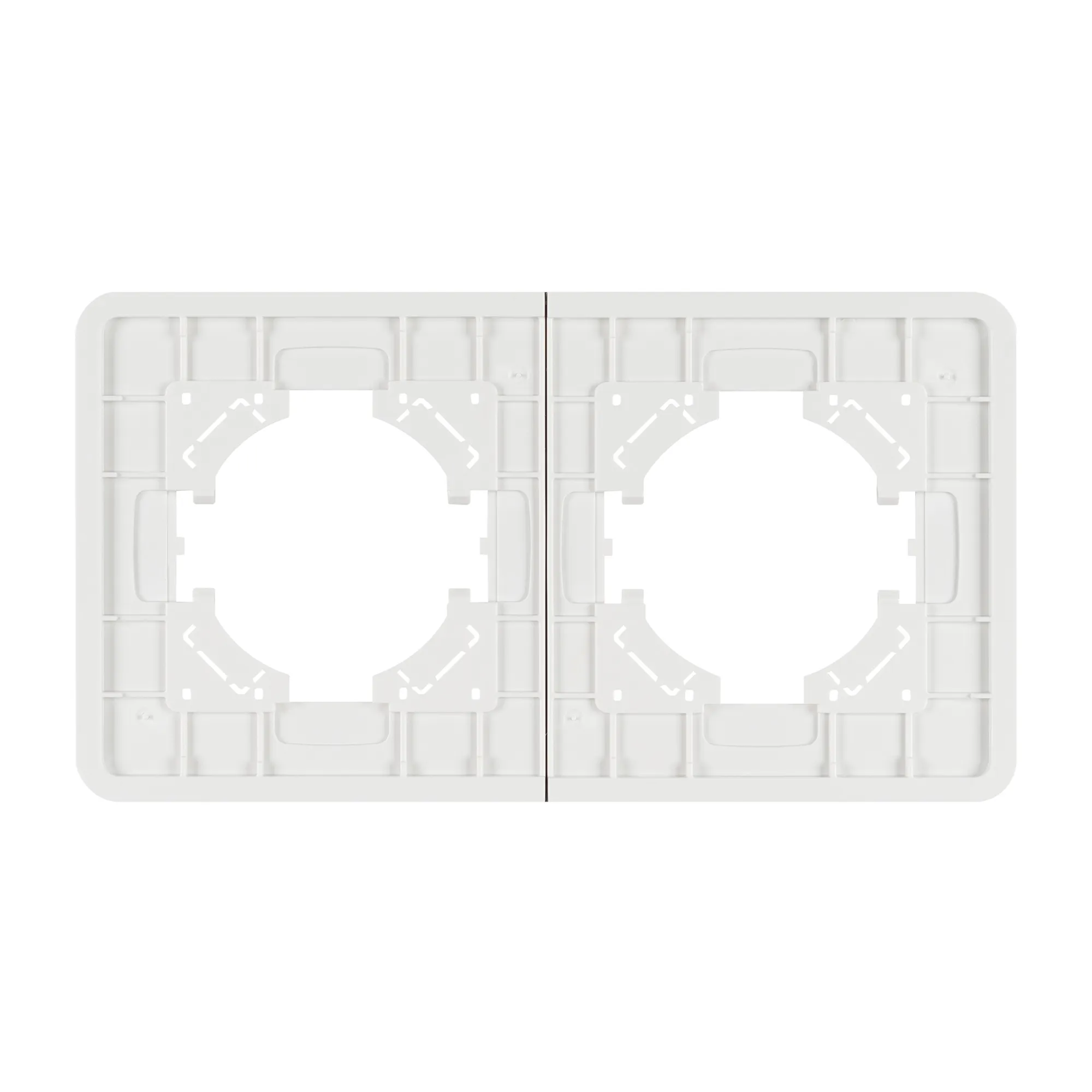 Рамка стеклянная на 2 поста, под встраиваемый механизм. Цвет - белый. Среднего уровня герметичности IP20. Ориентация монтажа - горизонтальная (основным ориентиром служат посадочные выступы для накладки механизма).
