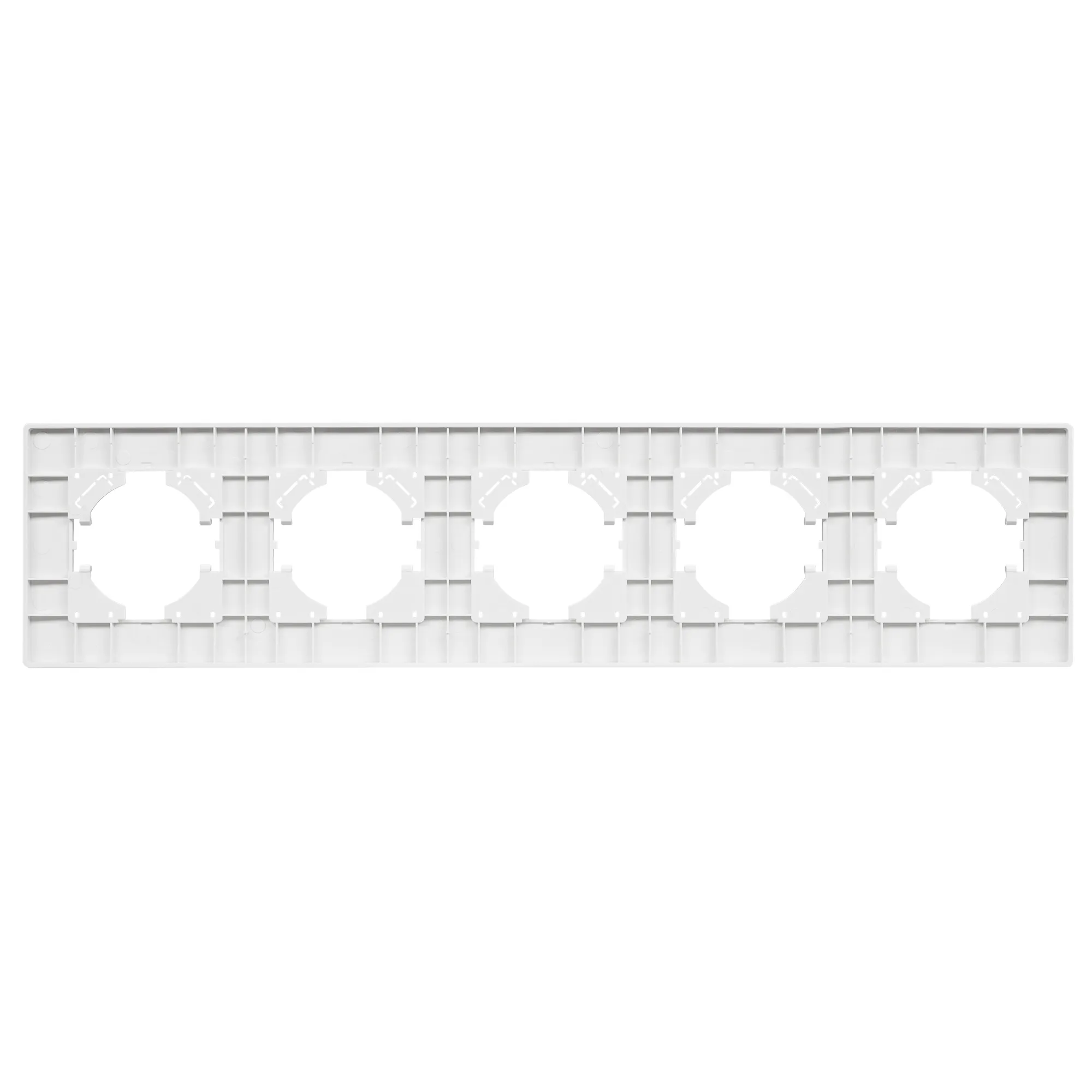 Рамка пластиковая на 5 постов, под встраиваемый механизм. Цвет - белый. Среднего уровня герметичности IP20. Ориентация монтажа - горизонтальная (основным ориентиром служат посадочные выступы для накладки механизма).