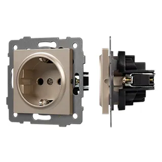 Механизм розетки с заземлением на 1 пост. Цвет - золотой. Без фронтальной рамки. Уровень пылевлагозащиты IP20. Устанавливается в стандартный подрозетник.