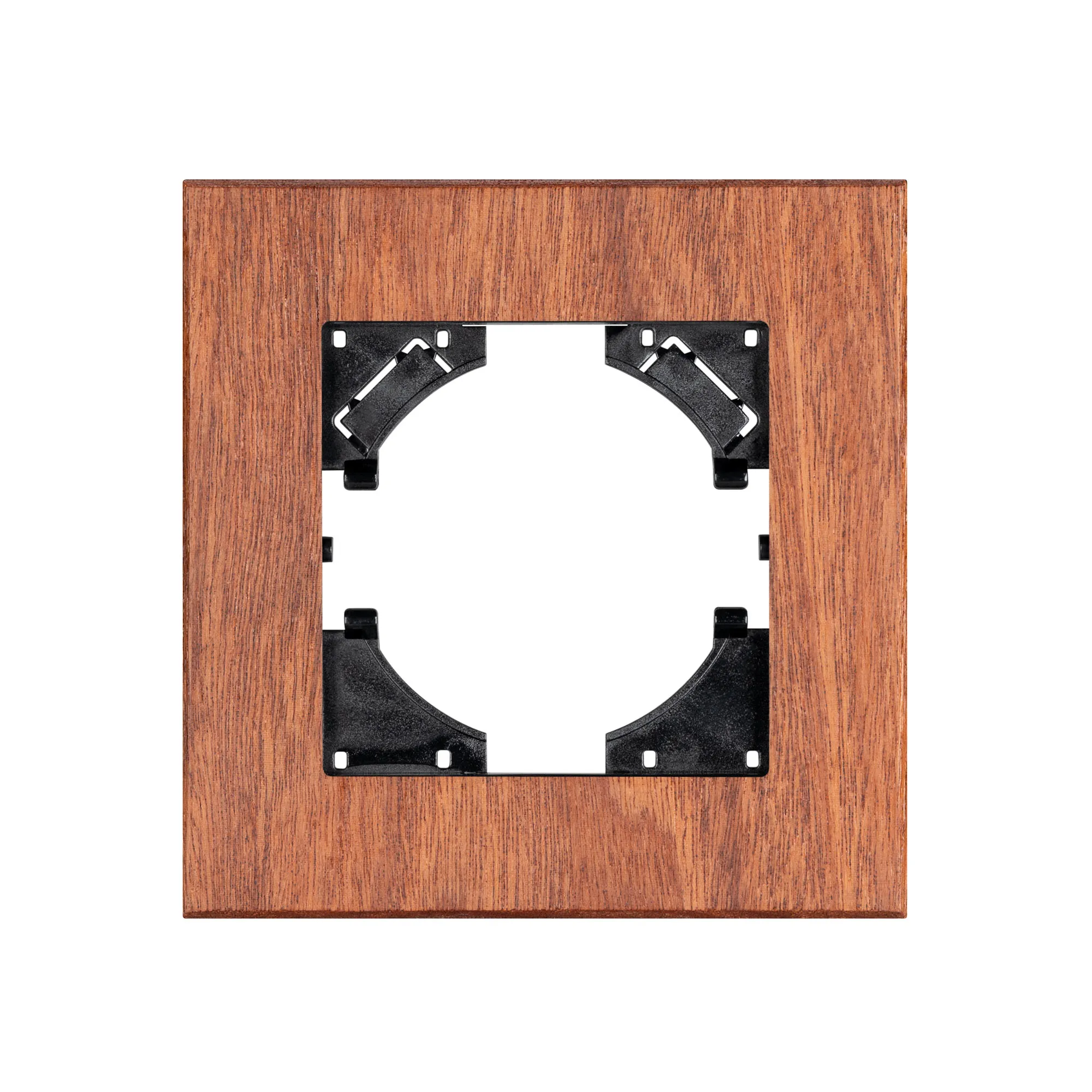 Рамка пластиковая на 1 пост с накладкой из натурального дерева, под встраиваемый механизм. Цвет - натуральное дерево*. Среднего уровня герметичности IP20. Ориентация монтажа - горизонтальная (основным ориентиром служат посадочные выступы для накладки механизма).