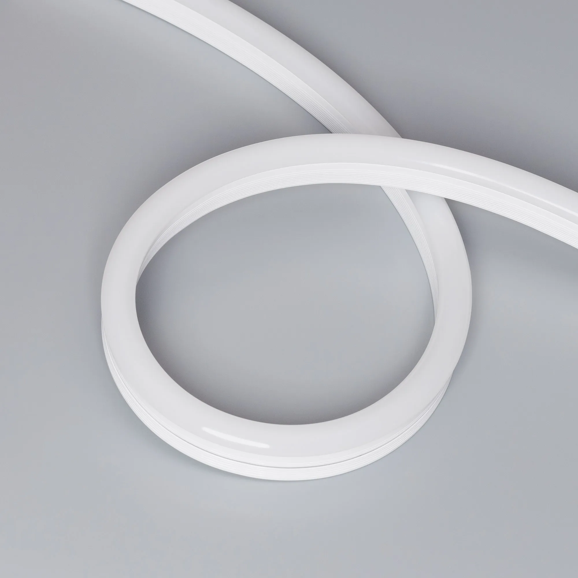 Гибкая герметичная лента (неон серии HALO), сечение 15×25 мм. Светодиоды SMD 2835 160 шт/м. Цвет свечения ХОЛОДНЫЙ БЕЛЫЙ (6000 К), индекс цветопередачи CRI>80, световой поток 480 лм/м, угол излучения 197°. Мощность 10 Вт/м, питание 24 В. Класс пылевлагозащиты IP67. Размеры 5000×15×25 мм. Мин. отрезок 50 мм. Горизонтальный изгиб SIDE, минимальный радиус изгиба 125 мм. Вывод кабеля с одной стороны. Катушка 5 м. Цена за 1 м. Гарантия 3 года.