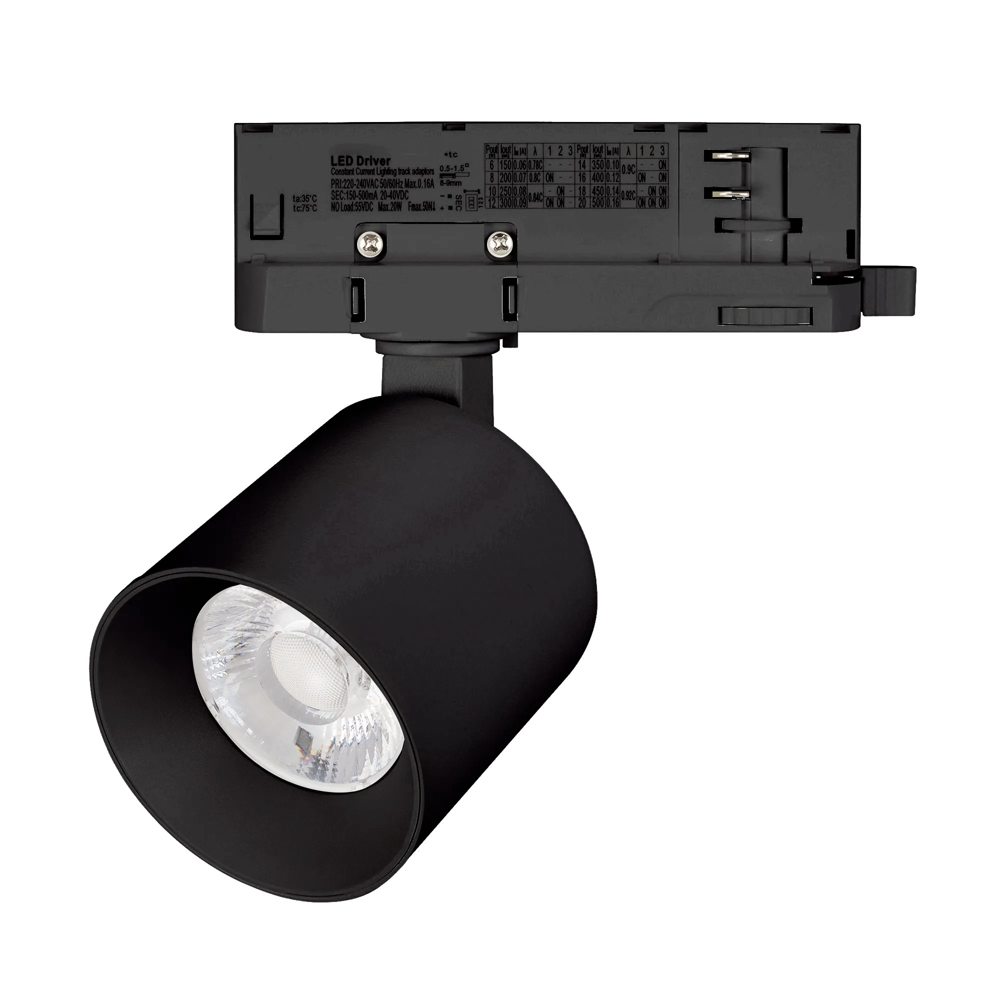 Светильник для трехфазных треков, 8 Вт с управлением DALI. Цвет свечения ДНЕВНОЙ 4000K, световой поток 736 лм, угол 50°, CRI>90. Корпус круглый, металл, цвет черный, IP20. Размеры Ø60x59,7 мм. Входное напряжение AC220-240V. Драйвер встроенный 10-42В (300-800 мА), 50/60Гц, максимальная мощность 42W.