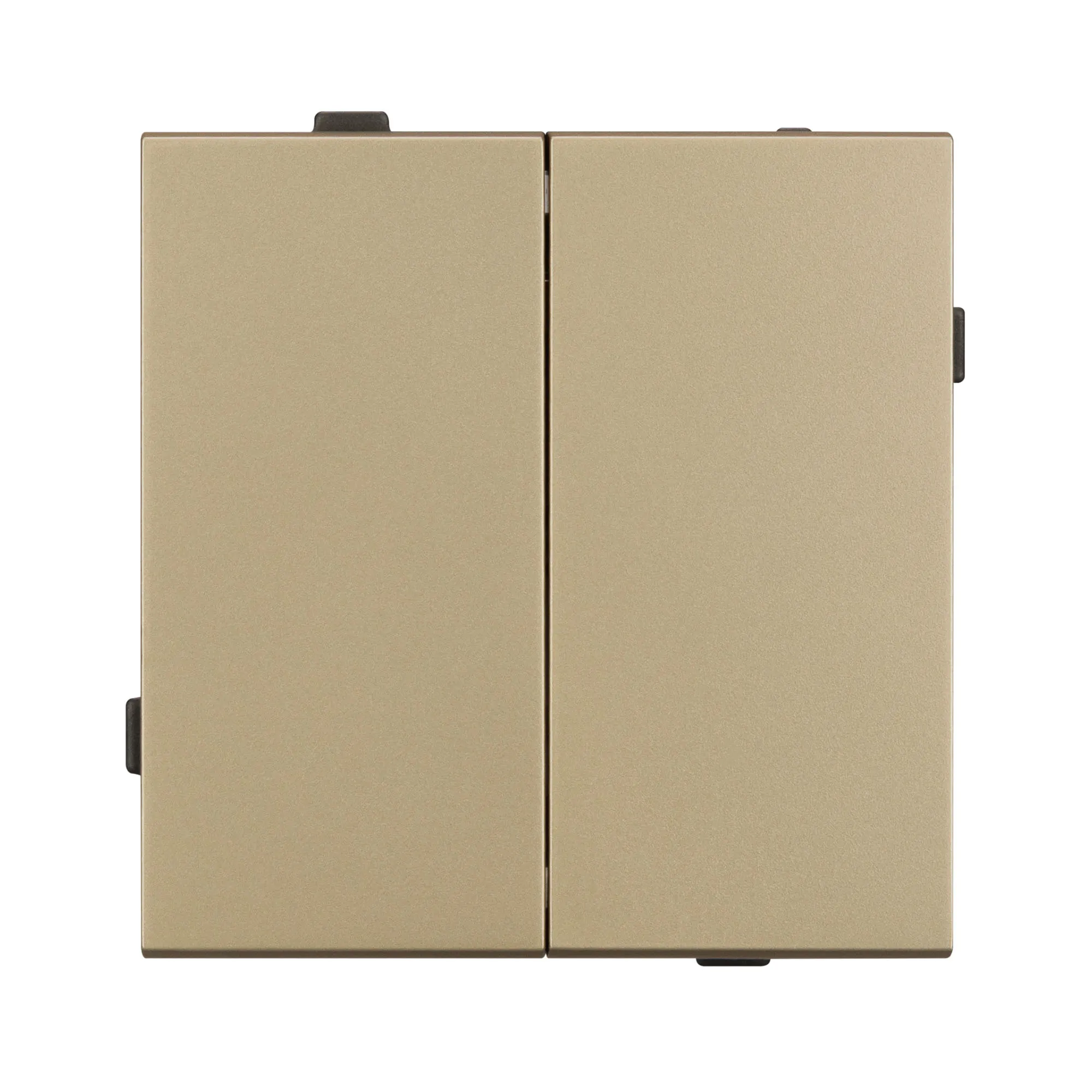 Механизм выключателя управления шторами на 1 пост 2 возвратные клавиши. Цвет - золотой, с Soft-Touch покрытием. Без фронтальной рамки. Уровень пылевлагозащиты IP20. Выключатель устанавливается в стандартный подрозетник круглого сечения диаметром 60мм.