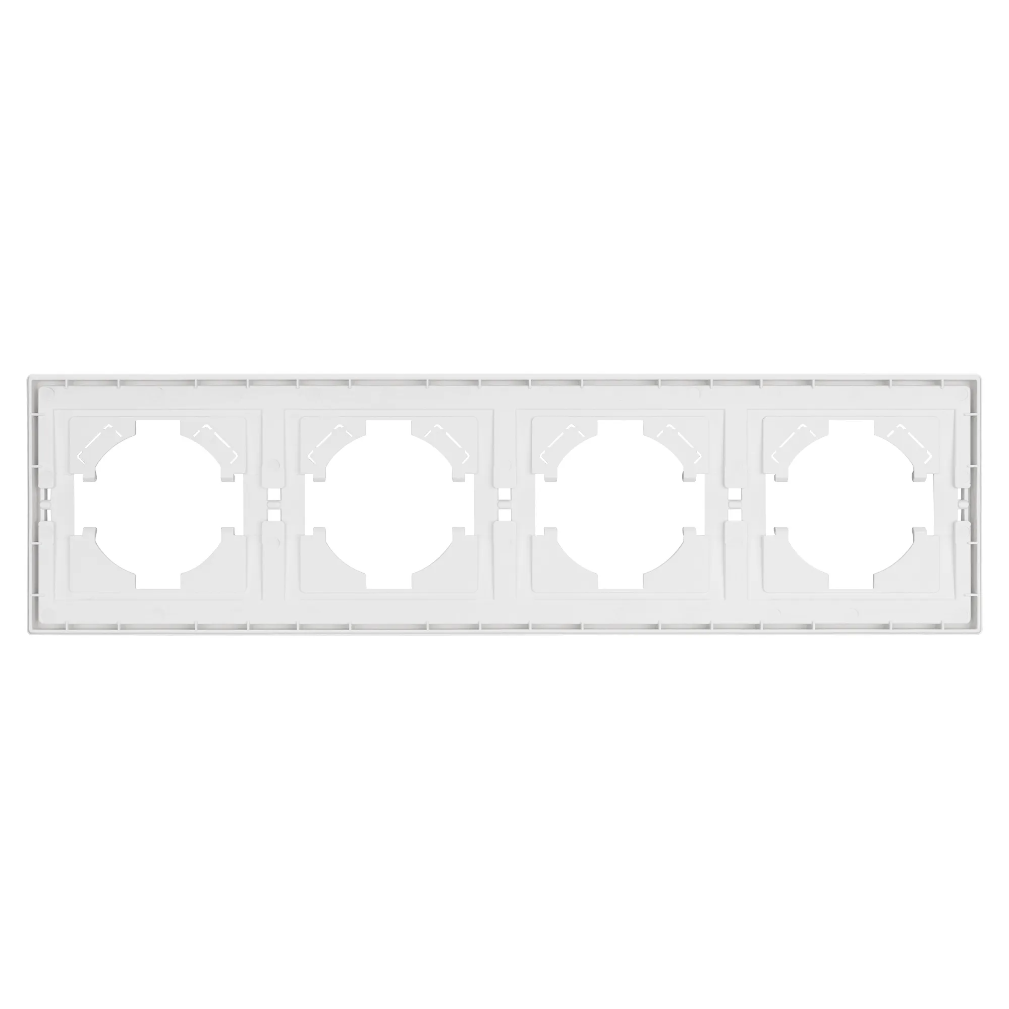 Рамка пластиковая на 4 поста, под встраиваемый механизм. Цвет - белый. Среднего уровня герметичности IP20. Ориентация монтажа горизонтальная.